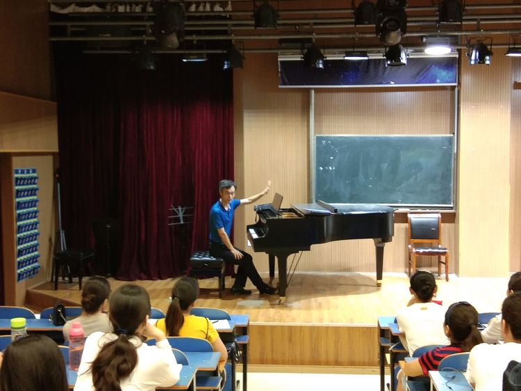 8月9日,为提高“省培”学员合唱指挥能力,伟德副经理陈新宇教授在艺术楼八音讲堂为“省培”学员讲授合唱指挥课。
