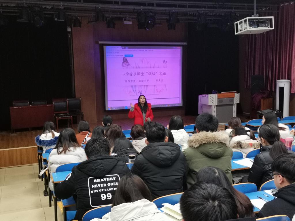 12月25日,信阳市第一实验小学音美教研组组长陈真真应邀来公司开展了《小学音乐课堂“探秘之旅”》的课程,公司周骏老师带领17级全体音乐学员工参加了活动。