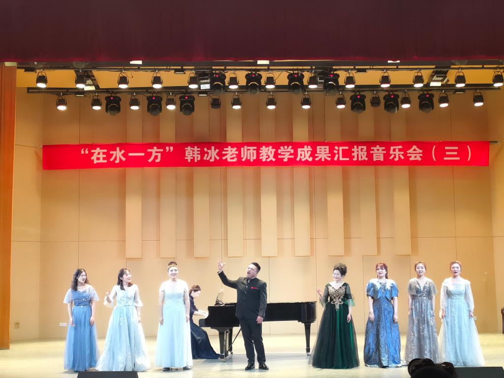 3月23日,公司声乐教研室主任韩冰老师在艺术楼音乐厅举办中国艺术歌曲“在水一方”女声声乐专场,公司副经理陈新宇、任远,党委副书记郭振与三百余名师生一同欣赏了音乐会。
