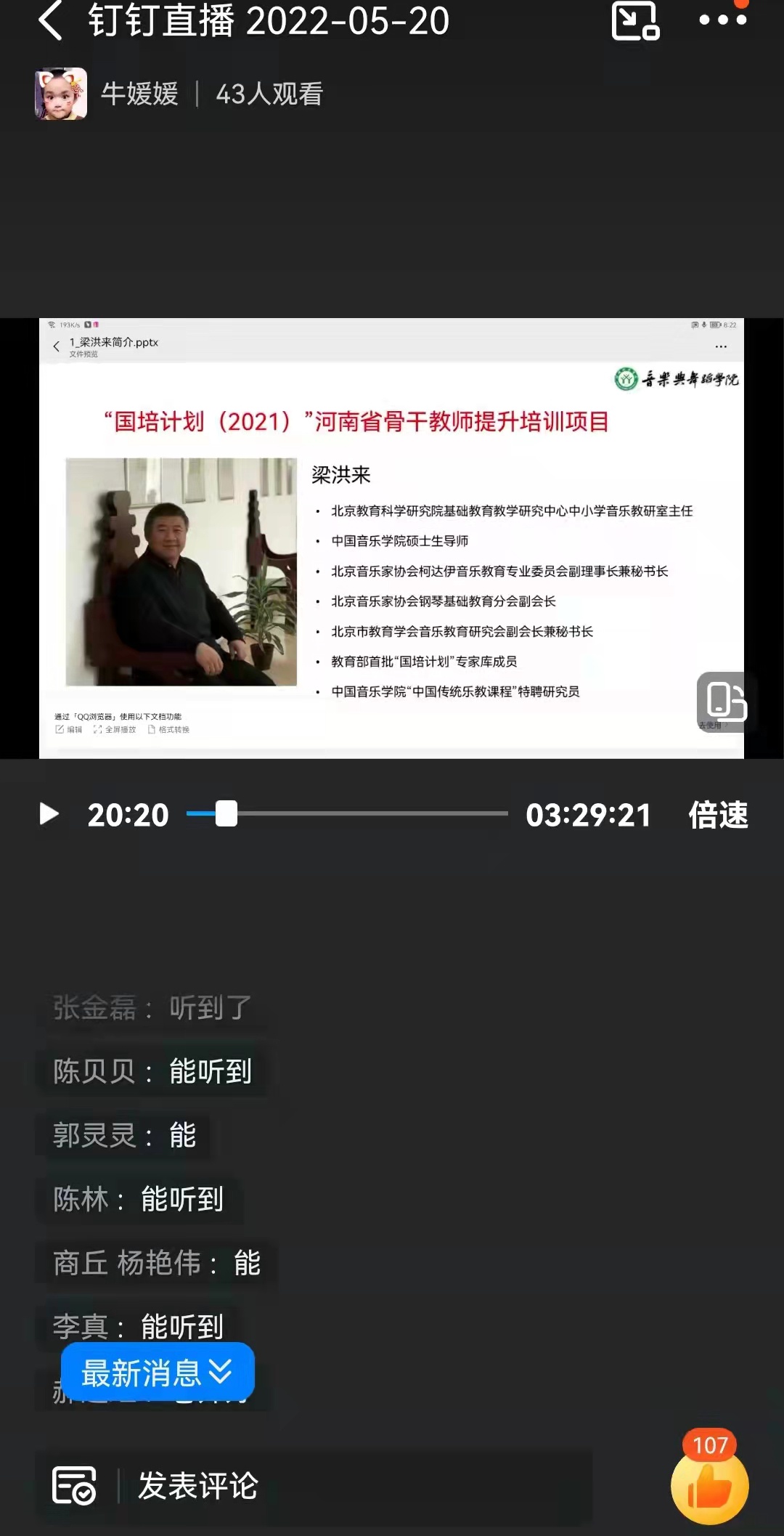5月20日,应伟德之邀,北京教育科学研究院梁洪来教授为国培计划——县级骨干教师提升培训小学音乐教师培训班学员讲授《指向员工音乐能力提升的教学设计》。由于疫情防控,本次采用线上授课。