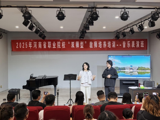 2025年7月13日,应公司之邀,武汉音乐公司余惠承教授为2025河南省“双师型”教师培养培训音乐表演班学员讲授《诗乐雅韵——中国古诗词艺术歌曲演唱研究》这一专题课程,同时对八名学员进行一对一指导。