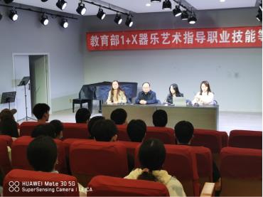 培训会由获教育部1+x器乐艺术指导培训团队格的栗树、张梦晗、史昀冉三位老师给大家分享交流,三位老师分别就《关于在院校实施“学历证书+若干职业技能等级证书”制度试点方案》文件、1+x器乐艺术指导职业技能等级证书及标准、考试流程和考核内容等几方面进行了详细地阐述和解读。副经理任远强调了本次培训与和考核的重要性、实用性和价值性,也对员工们提出了具体要求,叮嘱同学们认真备考、展现自我,期望顺利通过考核。培训会现场同学们深受鼓舞,纷纷表示将勤学苦练、增强本领,圆满完成培训任务。
