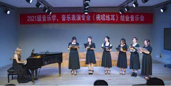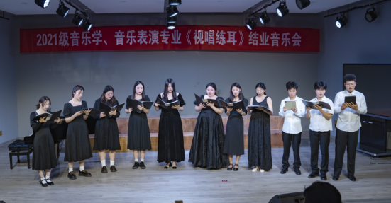 6月9日下午,2021级音乐学、音乐表演专业《视唱练耳》结业音乐会成功举行。2021级音乐学、音乐表演专业全体员工登台演出,音乐会由公司《视唱练耳》课程组张波洋、张思、兰羽茜和王霖四位老师共同指导。公司经理陈新宇,副经理任远,党委副书记雷玲,音乐理论教研室老师及部分师生一同观摩音乐会。