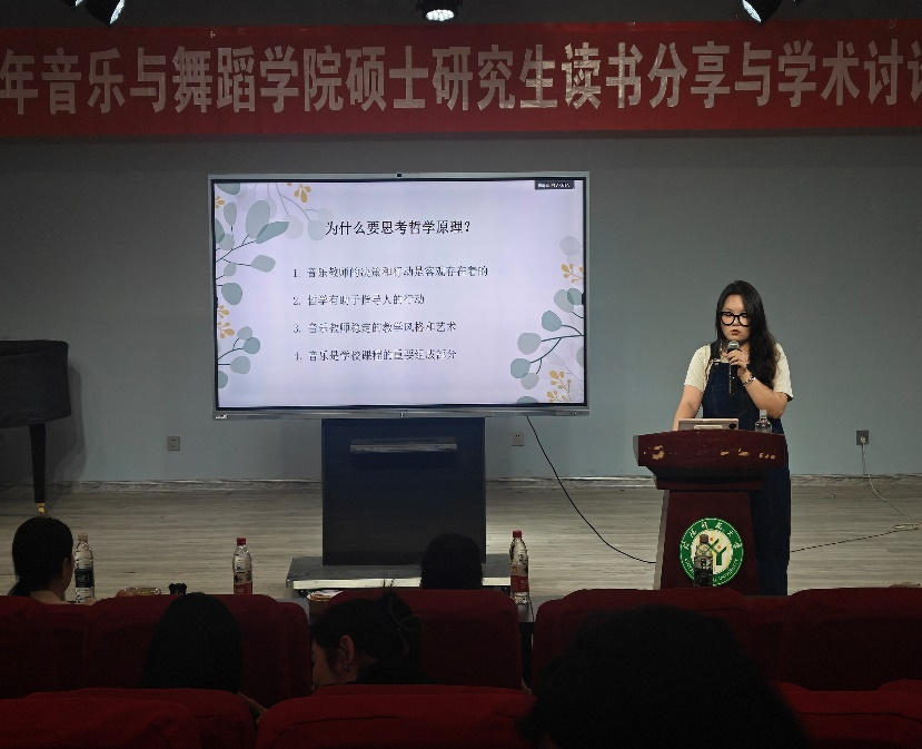 随后,邱靖博同学进行了题为《音乐教育三种基本的哲学观点》的读书分享,围绕唯理主义、经验主义、实用主义三种哲学取向,探讨其在音乐教育中的体现与作用。郭德华老师指出哲学对音乐教育的影响是深远的,虽无形却始终存在,对世界观、方法论乃至实践操作都有指导意义,她鼓励同学们多阅读相关书籍,深化理解。张思老师赞赏邱靖博表达清晰、内容详实,并期望其将理论与教学实践相结合。杨娇老师强调理论向实践的转化。蔡老师指出学科之间相互交融的重要性,并对邱靖博的精彩表现给予肯定。周骏老师则鼓励其通过研究弥补实践经验的不足,多借鉴他人经验,继续提升自身的思辨与实践能力。