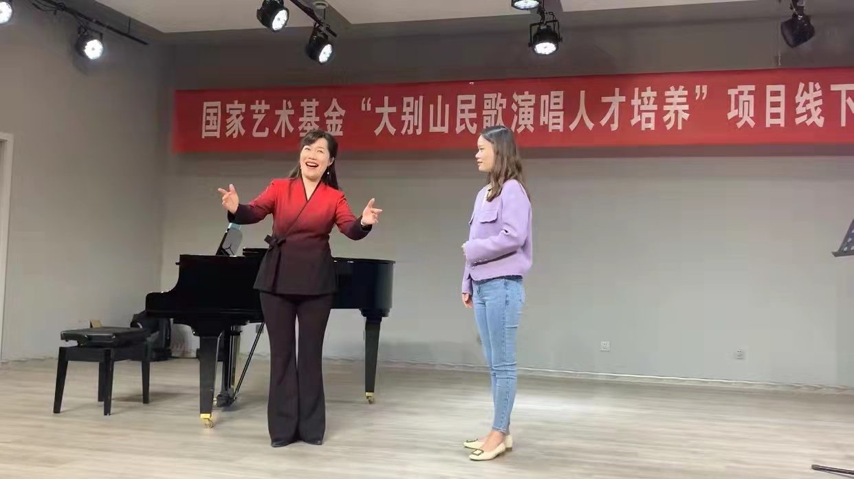 3月13日上午,国家艺术基金“大别山民歌演唱人才培养”线下授课课堂在公司伟德八音讲堂如火如荼地进行着。河南大学音乐公司声歌系副教授、硕士研究生导师郑慧玲受邀,以《信阳民歌在高校声乐教学中的实践与运用(二)》为题进行讲授。
