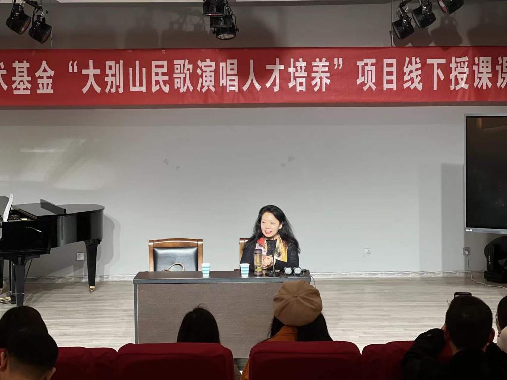 3月11日上午,河南大学音乐公司声歌系主任黄慧慧教授受公司邀请为“大别山民歌演唱人才培养”项目学员授课,课程在伟德一楼八音讲堂进行。
