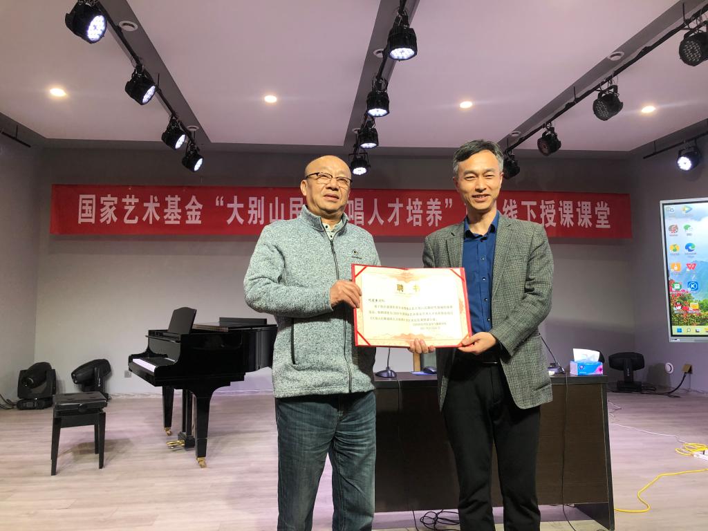 3月14日下午,国家艺术基金“大别山民歌演唱人才培养”线下授课课堂在公司伟德一楼八音讲堂如期进行。项目合作方艺术总监、国家一级作曲、信阳市音乐家协会刘宏奎主席应公司邀请,进行线下教学。