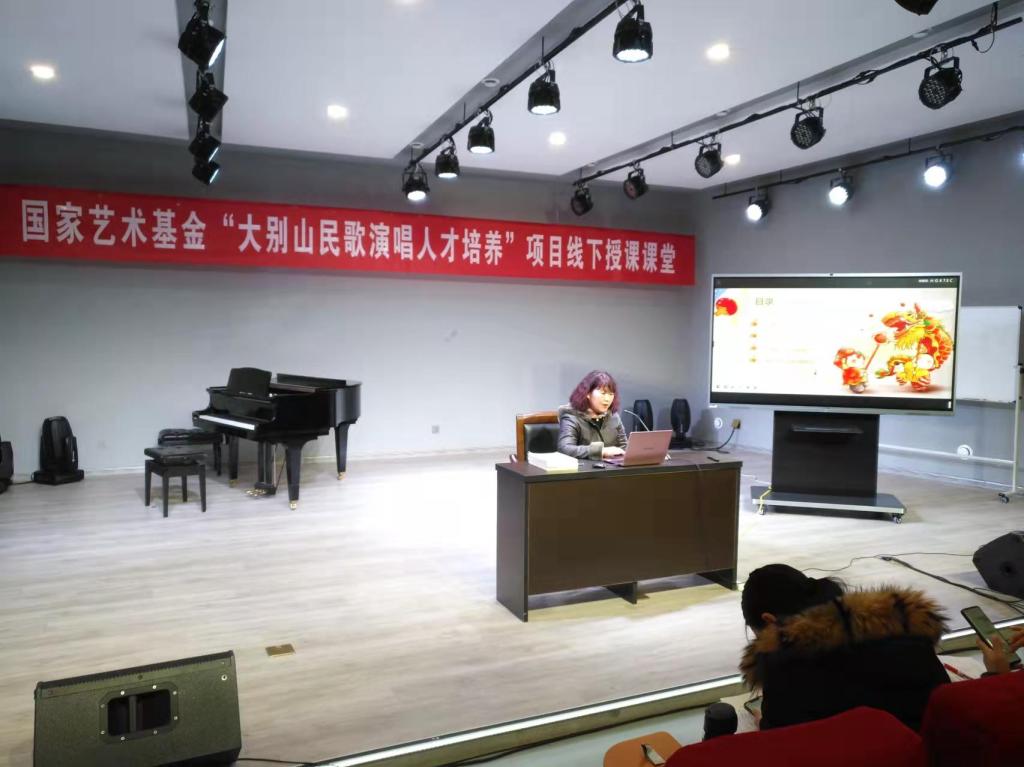 3月19日下午,国家艺术基金“大别山民歌演唱人才培养”线下授课课堂在公司伟德一楼八音讲堂如期进行。河南省非物质文化遗产(信阳民歌)代表性传承人、市级音乐骨干教师陈卉教师应公司邀请,在伟德一楼八音讲堂作了大别山传统民歌演唱专题的线下讲座,并由韩冰副教授主持。