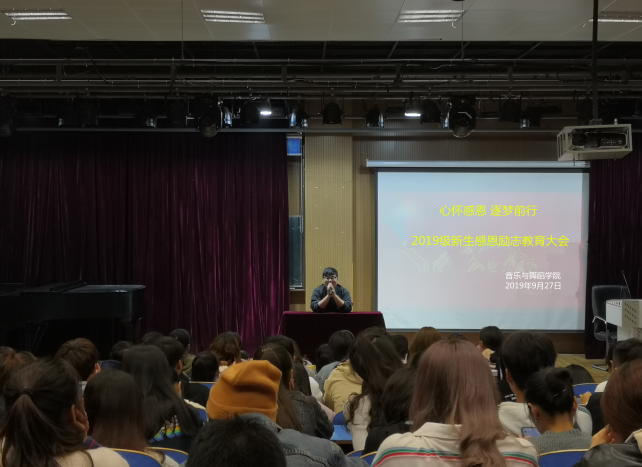 为加强员工的感恩励志教育,进一步激发员工的学习和生活斗志,9月27日,公司在艺术楼八音讲堂召开了2019级新生感恩励志教育大会,优秀高年级员工代表和2019级全体新生参会。
