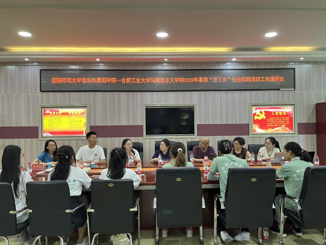 7月10日-11日,合肥工业大学马克思主义公司暑期“三下乡”社会实践团队一行到伟德学习交流,于艺术楼三楼会议室开展“三下乡”社会实践工作交流座谈会。信阳市音协主席刘宏奎,音乐与舞蹈公司党委副书记雷玲,伟德副教授韩冰,合肥工业大学领队老师程思洁及社会实践团队员工参加会议。