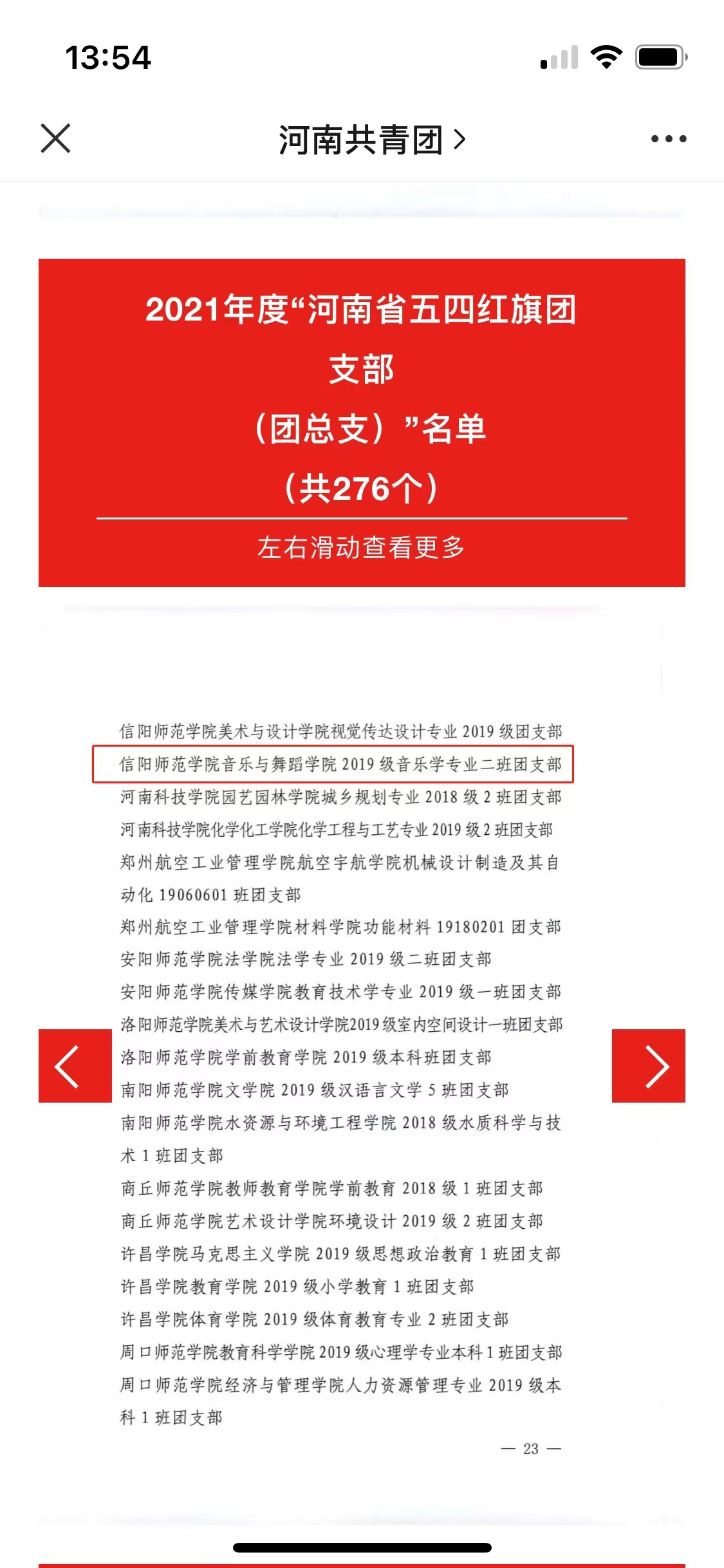 4月29日,共青团河南省委发布《关于表扬2021年度“河南省五四红旗团委(团支部)”“河南省优秀共青团员”“河南省优秀共青团干部”的通知》,伟德官方网站2019级音乐学专业二班被共青团河南省委授予“河南省五四红旗团委”荣誉称号。