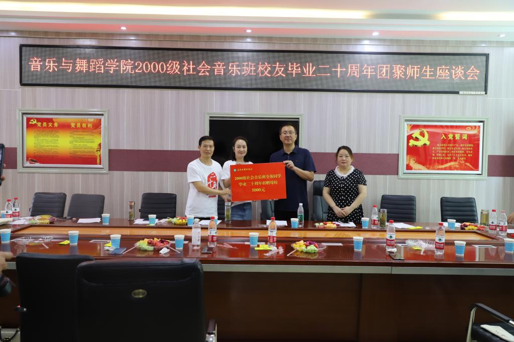 “时光不老,我们不散”,7月8日,公司2000级社会音乐班员工从各地回到母校,与阔别多年的老师和同学回顾青春岁月,重温师友情谊。公司党委书记周文勇,副经理任远,党委副书记雷玲、教师代表与返校员工见面并举行师生团聚座谈会。