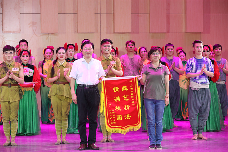 演出结束后,公司党委委员、宣传部长丁少锋代表公司向河南省舞蹈家协会赠送了“舞艺精湛、情满校园”的锦旗。