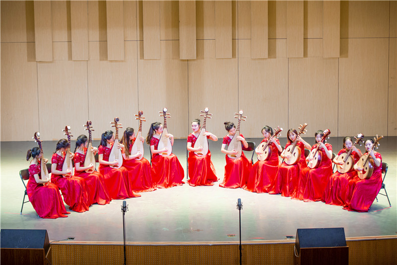 本场音乐会以庆祝新中国成立70周年为主题,历时一个半小时,内容丰富多彩,以钢琴、器乐、独唱、合唱等艺术表现形式,用歌声和乐曲深情回顾伟大祖国70年来走过的辉煌历程,为观众呈现了一场感染力极强、观赏性和艺术性俱佳的艺术盛宴。音乐会上,师生们载歌载舞,倾情演绎了《红旗颂》、《黄河颂》、《游击队之歌》、《祖国不会忘记》、《沁园春·雪》、《我的深情为你守候》等12个节目。其中,双钢琴《红旗颂》、《黄河颂》,演奏奔腾豪迈,乐曲铿锵有力,表达了爱国情报国志,唱出了对于新中国的赞颂和祝福;《狂野飞骏图》、《赶花会》、《游击队之歌》、《瑶族舞曲》等脍炙人口的民乐,通过欢快的节奏表达了师生心中对祖国母亲70华诞的祝福与喜悦;歌曲《多想对你说》、《跟你走》、《祖国不会忘记》以优美的旋律、朗朗上口的词句,唱出来了中国人民站起来、富起来到强起来的豪迈情感,抒发了奋进新时代,共筑新辉煌的壮志豪情;最后一曲竹笛重奏《我的祖国》,激动人心的旋律把音乐会推向高潮,整场演出圆满落下帷幕。