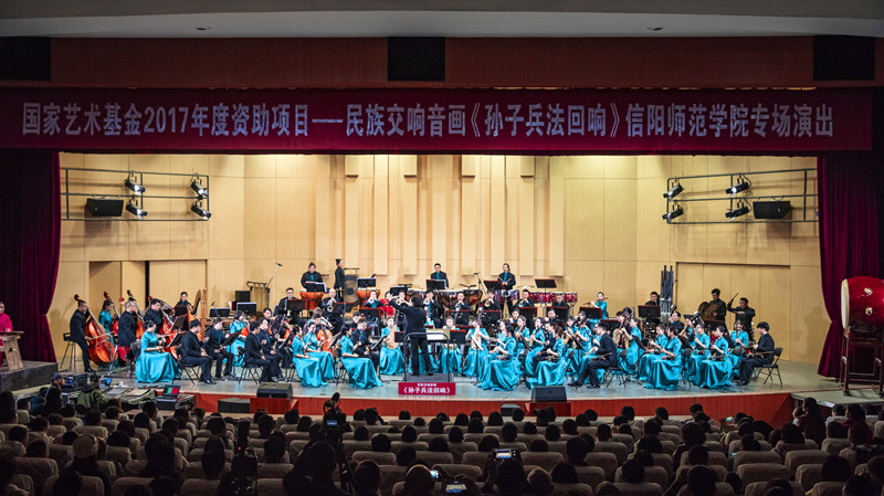 11月18日,国家艺术基金2017年度资助项目、民族交响音画《孙子兵法回响》在艺术楼音乐厅震撼上演。公司党委副书记郜火星与600余名师生一同观看了演出。