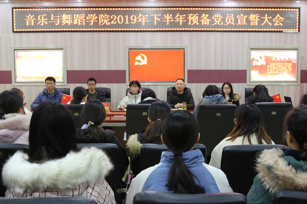 12月17日,公司在艺术楼“党员之家”隆重举行2019年下半年预备党员宣誓大会。公司党委副书记郭振、专职组织员张倩、员工党支部书记张莹莹、唐晓云、张焕然、曹阳和新接收的36名预备党员参加了会议。会议由张倩主持。