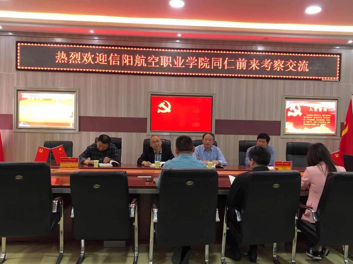 5月8日,信阳航空职业公司党委副书记马聪一行四人前来公司考察交流党建工作,公司人才招聘处处长江玉安同志陪同考察。公司党委副书记郭振在艺术楼“党员之家”会议室与来宾进行了座谈交流。