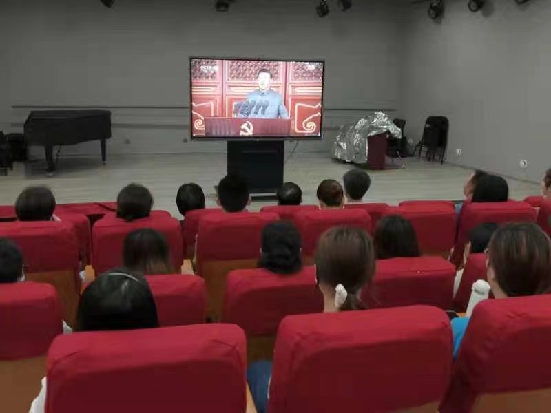 7月1日上午8时,庆祝中国共产党成立100周年大会在北京天安门广场隆重举行。中共中央总书记、国家主席、中央军委主席习近平出席并发表重要讲话。公司师生采用集中与分散收看相结合的方式收听收看了大会直播。在艺术楼八音讲堂,副经理陈新宇、任远,党委副书记郭振与师生党员一起集中收看直播。已离校的员工在家自觉观看、学习。