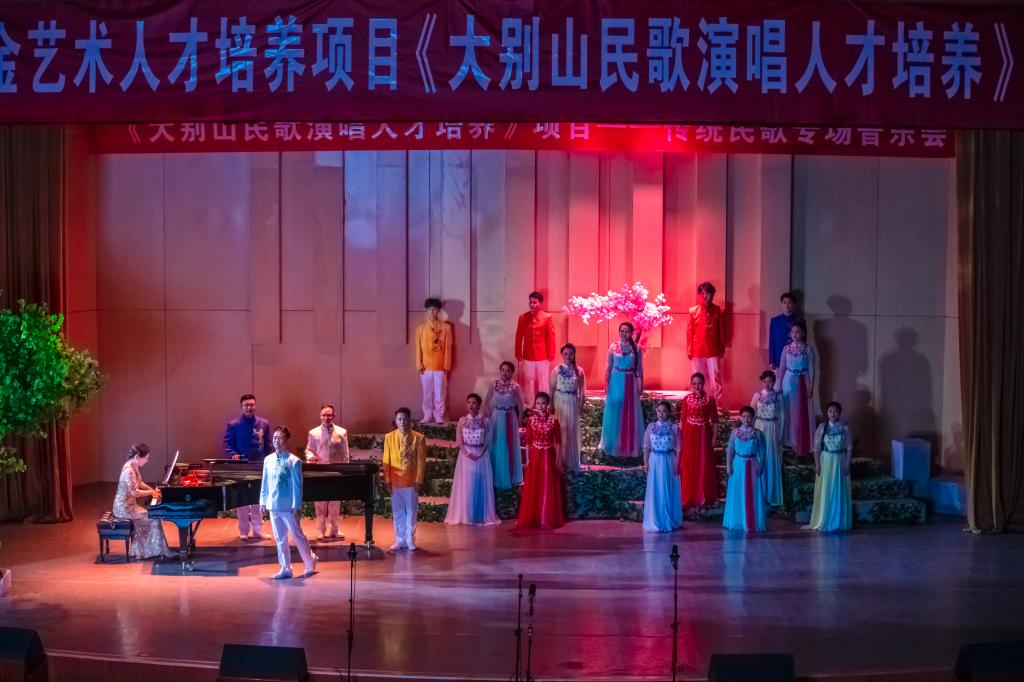 本次国家艺术基金“大别山民歌演唱人才培养”项目以环大别山及周边地区为主,辐射全国招收学员,课程以理论和实践相结合的理念进行导向培训,集结全国知名专家教授们进行线上线下授课指导,使学员们对大别山民歌“知其本、得其形、品其韵、扬其声”,以文化认知为主导进行多维度的提升。此次项目的顺利实施和音乐会的圆满举行,遵循“小批量,高层次”的培训标准,着重培养一批演唱卓越、表演精湛、传播大别山音乐文化的高层次民歌演唱艺术专业人才,并以此为契机传承大别山民歌,弘扬中华传统优秀文化。