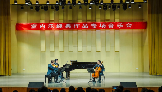 最后,本场室内乐经典作品音乐会在观众的热烈掌声中圆满落幕,让在场师生们享受了一场纯粹的音乐盛宴,演出现场气氛热烈、高潮迭起。三位演奏家致力于室内乐的演奏与推广,他们不仅拥有高超的演奏技巧,更具备丰富的演出经历。三位演奏家对于音乐的热爱与追求感染着现场的听众,用音乐为现场师生带来了一个经典又浪漫的夜晚。