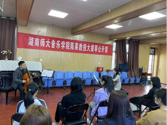 4月26日,应伟德邀请,湖南师范大学教授,硕士研究生导师,青年大提琴演奏家陈果来公司举办大提琴公开课。器乐教研室弦乐专业师生参加了公开课,并对陈果教授的到来表示热烈的欢迎。