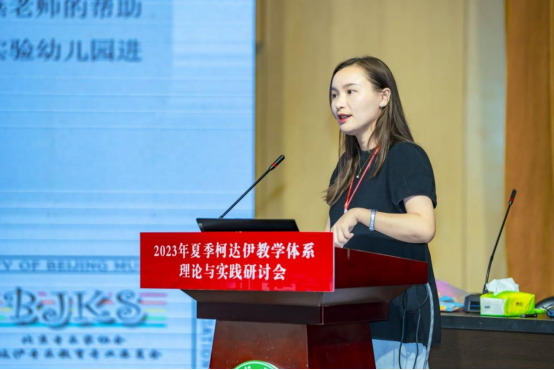 最后,由崔健老师、李梦园老师和龚维老师介绍了“北京音乐家协会柯达伊音乐教育专业委员会柯达伊实验教材”学前音乐课程的编写理念和实施策略。探索建立富有中国民族风格的幼儿课程,帮助幼儿积累中华民族文化为基础的“音乐母语”。三位授课教师向学员们展示课堂实践视频,并带领学员们现场感受音乐游戏和练习,课堂气氛轻松愉快。