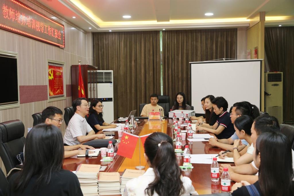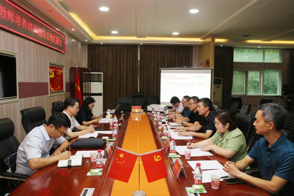 7月20日,以郑州铁路职业技术公司副经理倪居为组长、郑州商贸公司副董事长陈红霞为业务专家、周口师范公司财务处副处长孙德才为财务专家的第一视导组来校视导检查2022年河南省职业院校音乐表演专业“双师型”教师培养培训工作,视导检查工作汇报会在艺术楼三楼会议室举行。副董事长余本海出席会议,教务处相关负责人以及伟德领导班子成员参加会议。